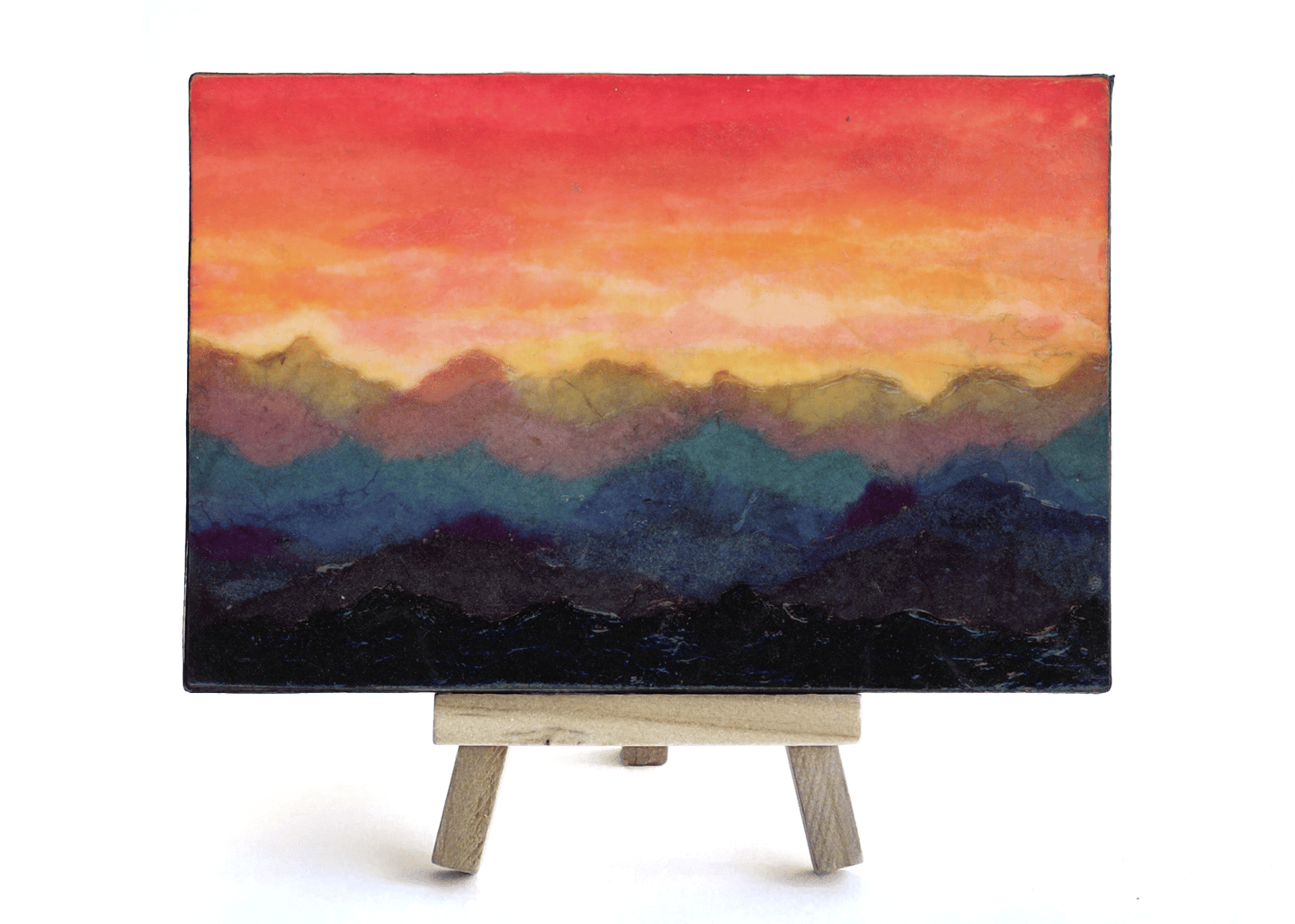 These "small canvases" are sometimes studies for larger, subsequent pieces. Their 6" x 4" size is a convenient way to try new techniques, papers and color combinations. They often help spark inspiration and shake off the creative cobwebs, or serve as a sort-of warm-up, like a musician practicing scales.